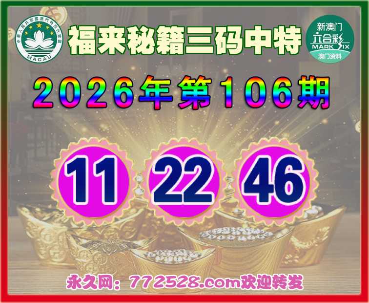 106期: 🏄‍♀️『福来秘籍』 🏄‍♀️三码中特🏄‍♀️【11.22.46】开:22准上榜高手