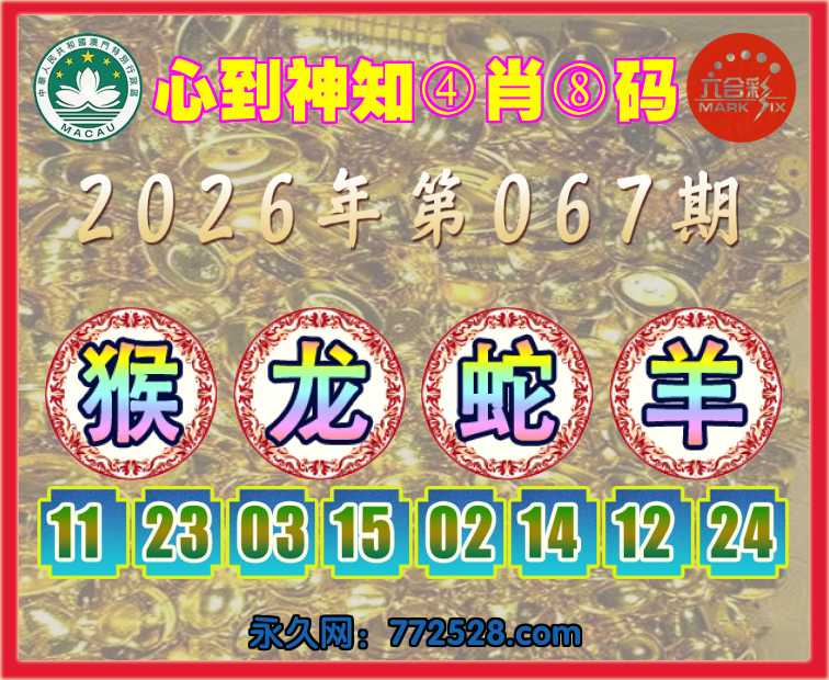 067期:〖心到神知〗 ☺️④肖⑧码☺️【猴龙蛇羊】开:虎05